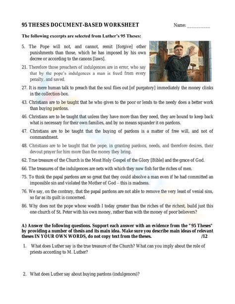 Your task is to read and. Web luther’s 95 theses primary source worksheet teaches students about document that started it all. Worksheets are facts about the 95, martin luther 95 theses, narr es.