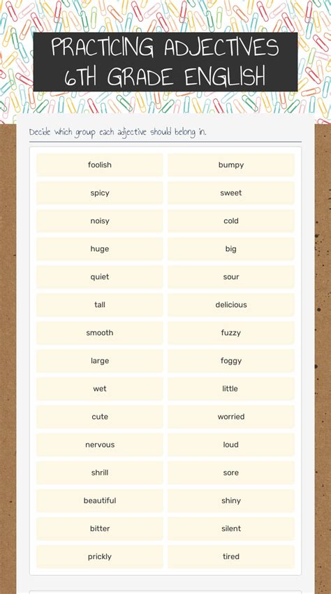 Adjectives Sixth grade worksheet from www.liveworksheets.com