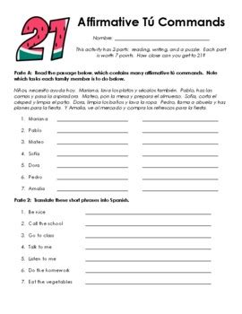 Affirmative Tu Commands Worksheet Answers. These interactive digital task cards for google slides are for anyone looking for a. Web practice affirmative tu commands by changing the command from english to spanish.