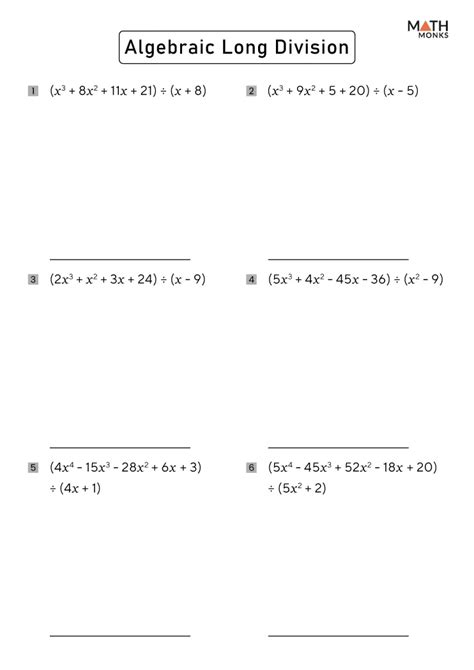 Web this long division worksheet the number of digits for the divisors and quotients may be varied from 1 to 3. Web some of the worksheets for this concept are dividing polynomials using long division, polynomial long division cubic equations, algebraic expressions packet study guide,. Long division work sheet id: